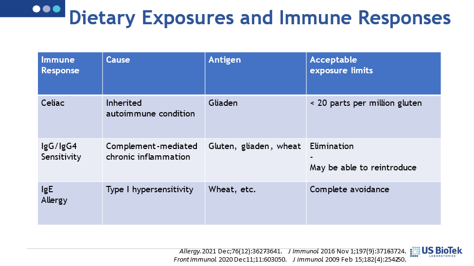 In order to answer properly, clinicians need to understand the different proteins in wheat and gluten grains, and the types of reactions that can occur with exposure to those proteins. There is a difference in exposure risks between those with Celiac disease, IgG/IgG4 non-Celiac gluten sensitivity (NCGS) and those with IgE wheat allergy.
